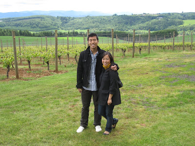 After the Farmer's Market, we dropped the grandparents off at the Casino (the trusty adult babysitter) and headed off for some wine tasting in the famous Willamette Valley with Kyle's parents. We went to McMinnville and stopped at Coleman Vineyards first. The whole valley was having special wine tasting events for the weekend, and since we arrived relatively early (It was 5pm somewhere at this point...), the place was empty and we had first dibs on the amazing food and wine at this "boutique," small, family-owned vineyard. Above is the 10 wines we tasted. Good thing Kyle and I were not the designated drivers, so we happily and greedily tasted all 10, plus one more taste of our favorite, a 2006 Pinot Noir, "just to be sure" that it was really good and worth buying.